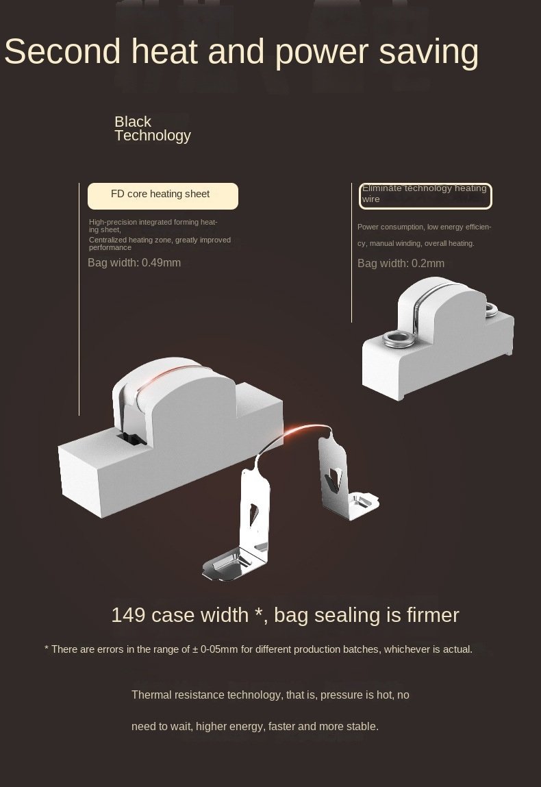 [Easy to Use] - The mini bag heat sealer has updated technology, which is easier and safer to operate. No preheating is required, just load the batteries and use. 1.Put the bag to be sealed on the mini sealing machine. 2.Ppress the lid to clamp the bag, the high-efficiency and low-loss heating film will reach the sealing temperature in an instant. 3.Manipulate the sealing machine to slide slowly along the position that needs to be sealed. Easily, the tight sealing can be completed.